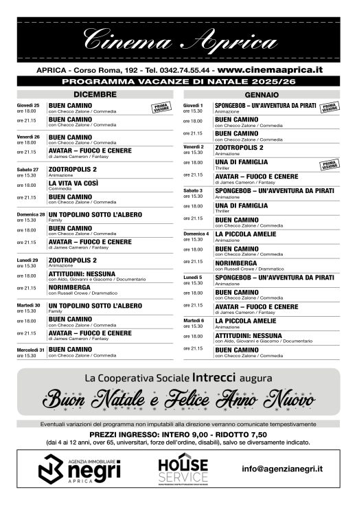 #Giovedì 25 dicembre ore 18.00 e ore 21.15; venerdì 26 ore 18.00; sabato 27 ore 21.15; domenica 28 ore 18.00; martedì 30 ore 18.00; mercoledì 31 ore 15.30; giovedì 1 gennaio ore 18.00 e oreInfo Film
